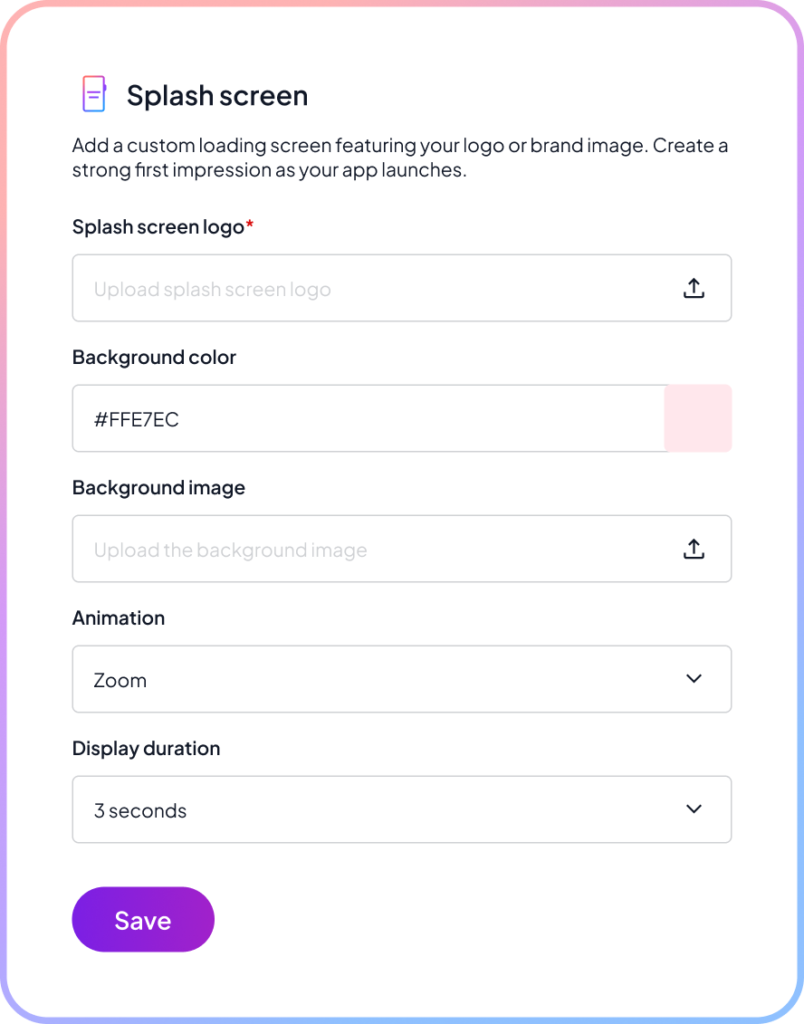Control how long the splash screen is shown (e.g., 1–5 seconds).